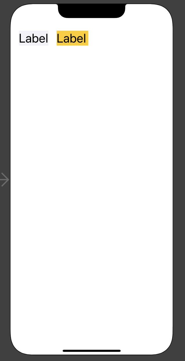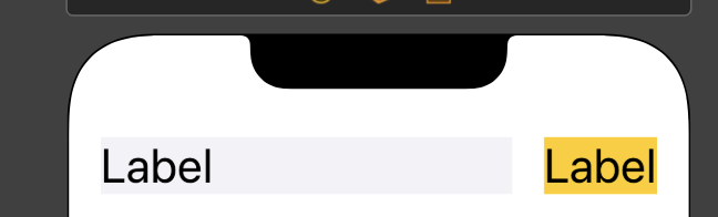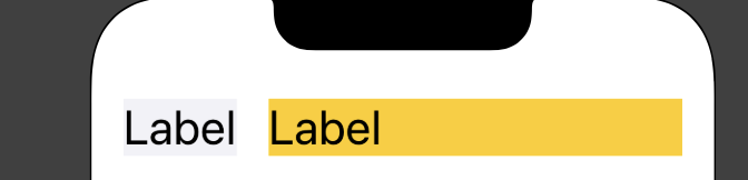 이번엔 반대로 노란색 라벨의 Width 가 고정되지 않고 늘어난 것을 볼 수 있다. 노란색 라벨의 Hugging Priority 가 회색 라벨보다 낮기 때문이다.