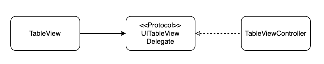 아마 TableView 혹은 CollectionView 를 구현할 때 Delegate pattern 을 가장 자주 접하게 될 것이다. TableView 를 구현하는 예제를 아래에서 살펴보도록 하자.