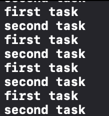 동기 방식으로 작업을 순서대로 삽입했다. 이 코드를 실행하면 DispatchQueue 에 들어간 순서대로 first task 가 먼저 출력되고 난 뒤에, second task 문장이 마저 출력된다. 위 작업들을 다음과 같이 비동기적으로 삽입해보자